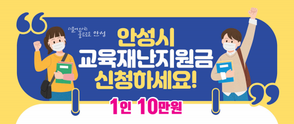 안성시(시장 김보라)가 코로나19 장기화로 인해 정상적인 교육 서비스를 받지 못한 학생들의 교육활동을 지원하기 위하여 지급하는 교육재난지원금 신청을 11월 1일부터 온라인을 통해 받는다.