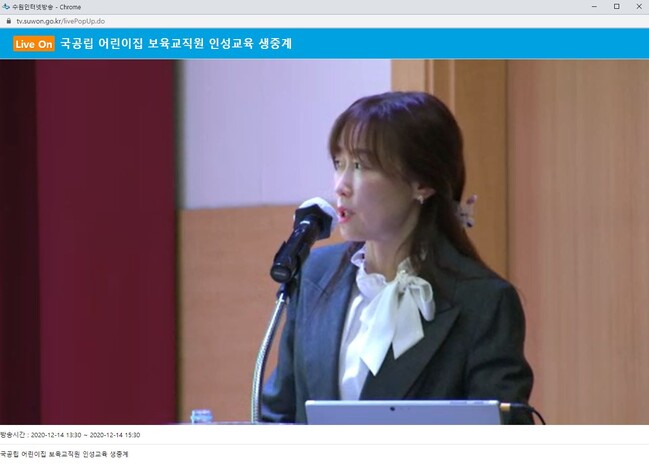 사진/14일 온라인으로 진행된 ‘2020 국공립어린이집 보육 교직원 인성교육’ (수원시청 제공)
