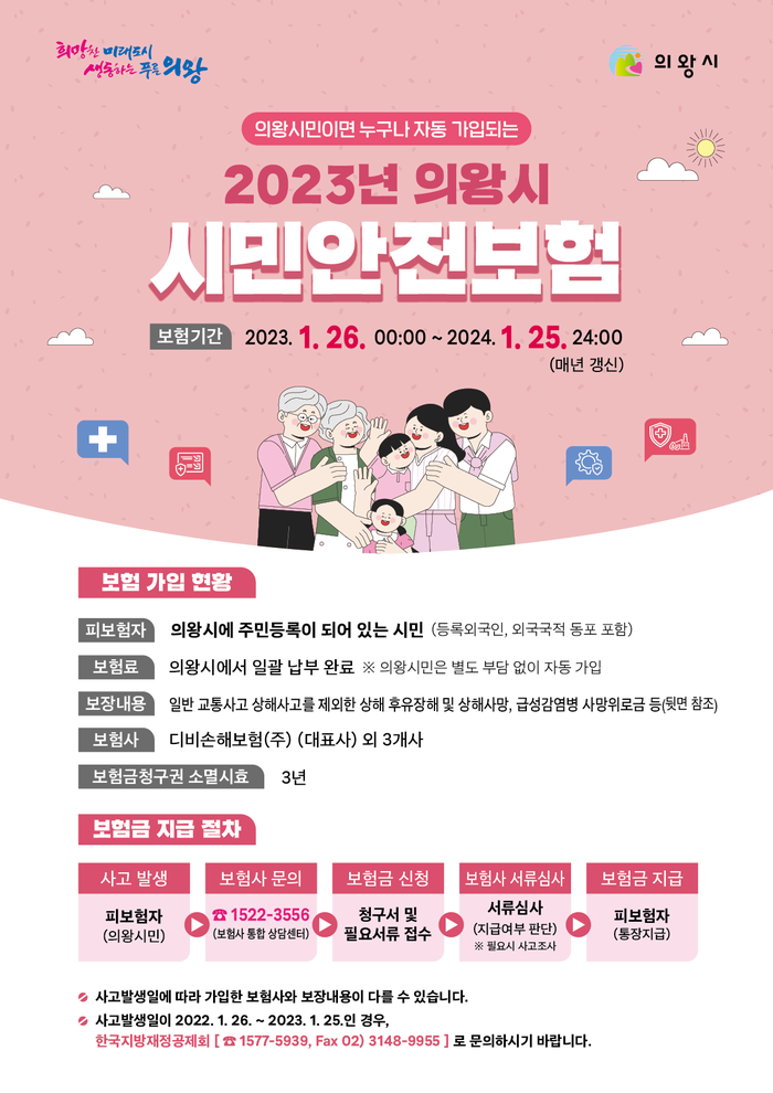 안전보험의 자세한 내용은 의왕시청 홈페이지(분야별→재난/안전→시민안전보험)에서 확인할 수 있다.