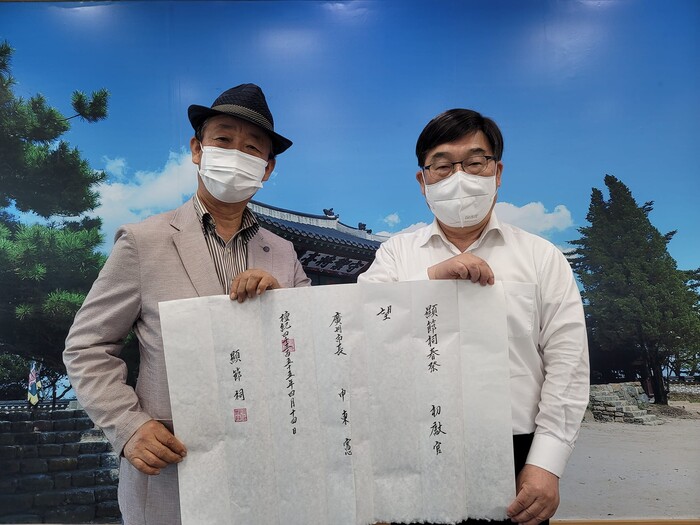 [로컬라이프] 송준형 기자 = 신동헌 광주시장은 7일, 현절사의 이단우 도유사께서 남한산성 현절사 望帖을 전달하기 위해 시청을 방문해 주셨다고 말했다.