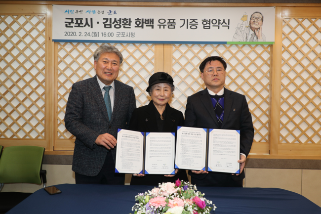 군포시는 24일 오후 故김성환 화백 유족으로부터 고인이 남긴 작품과 작가 아카이브 자료 모두를 군포시의 공공문화유산으로 기증하는 협약서를 체결했다.
