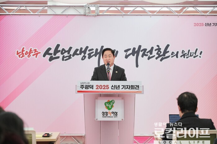 [남양주=로컬라이프] 김민정 기자 = 주광덕 남양주시장은 22일 시청 여유당에서 신년 기자회견을 열고 "2025년을 남양주 산업생태계 대전환의 해로 만들겠다"고 강조했다.