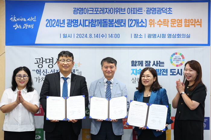 협약에 따라 한국커뮤니티연구원은 올해 9월부터 광명아크포레자이위브 다함께돌봄센터를, 한국복지연대사회적협동조합은 11월부터 광명광덕초 다함께돌봄센터를 5년간 위탁 운영한다.