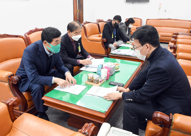 [로컬라이프] 윤화섭 안산시장이 국회에서 정성호 예산결산특별위원회 위원장을 비롯한 예결위원들을 잇따라 만나 내년도 안산시 주요 현안사업의 시급성과 필요성을 설명하고 국비 지원을 건의했다.