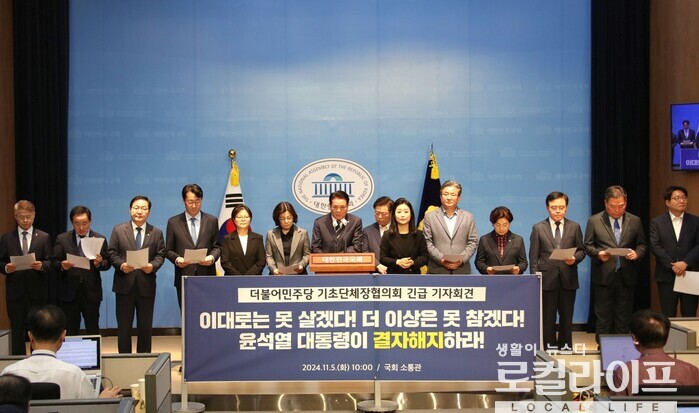 [로컬라이프] 김민정 기자 = 더불어민주당 기초단체장협의회(이하 '협의회')는 5일, 공동 성명을 내고 윤석열 대통령의 결단을 촉구했다.