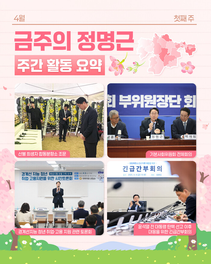 그러면서 벚꽃처럼 찬란한 봄날, 금주의 정명근이라며 위 사진과 같이 전했다.