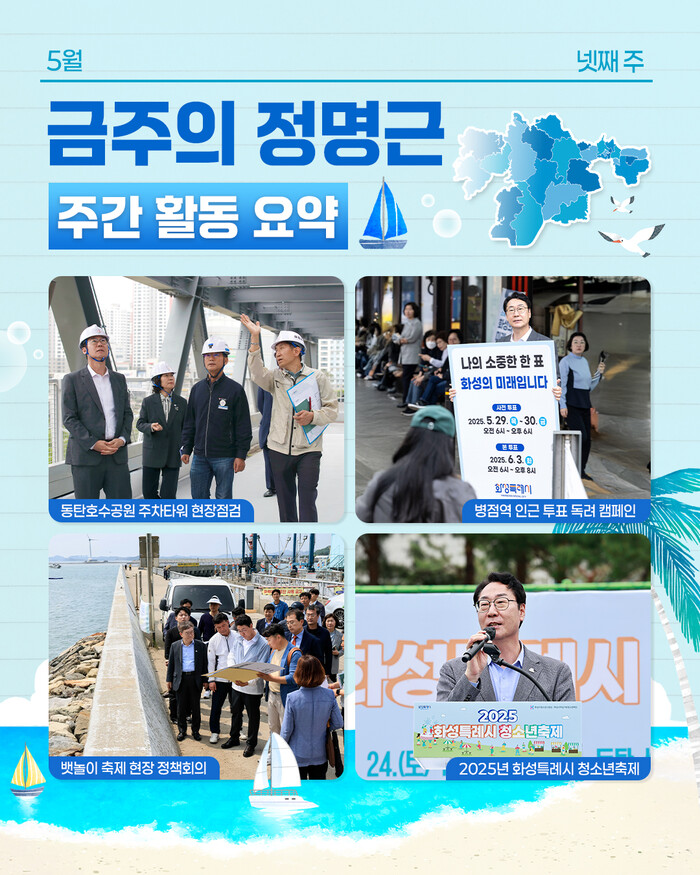 [화성=로컬라이프] 송준형 기자 = 정명근 화성특례시장은 25일, 행복한 주말 보내고 계신가요? 다음 주에는 드디어 수도권 최대 해양 축제인 화성 뱃놀이 축제가 열린다고 밝혔다.