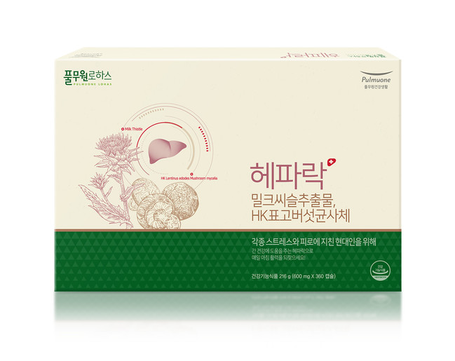 풀무원로하스의 헤파락은 식약처로부터 ‘간 건강에 도움을 줄 수 있다’는 기능성을 인증 받은 ‘밀크씨슬추출물’의 실리마린(130mg), ‘HK표고버섯균사체(350mg)’를 주원료로 한 건강기능식품으로, 두 원료 모두 식품의약품안전처가 권장하는 일일 섭취량을 100% 함유하고 있다.