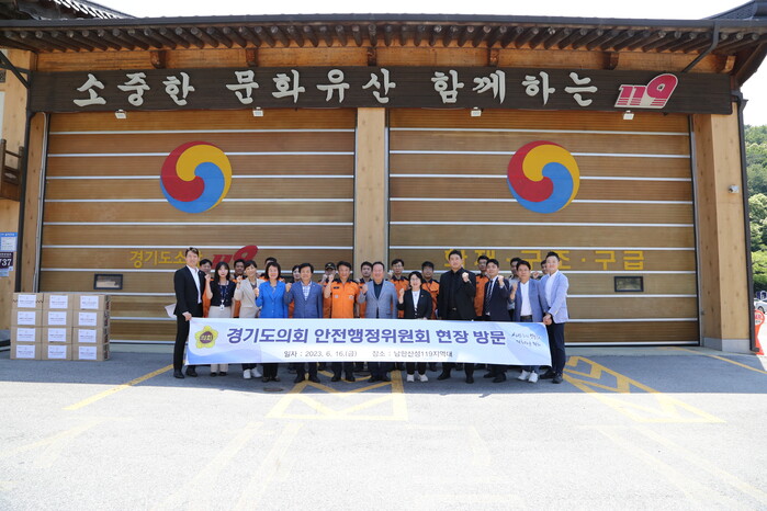 경기도의회 안전행정위원회(위원장 안계일, 국민의힘, 성남7)는 16일(금) 남한산성 화재 예방 및 대응 방안을 살펴보고 현장을 점검하고자 ‘광주소방서 남한산성 119지역대’를 방문했다.