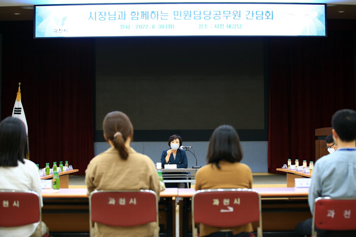 신계용 과천시장은 민원담당 공무원과 간담회를 통해 민원서비스 향상에 대해 논의하는 시간을 가졌다.