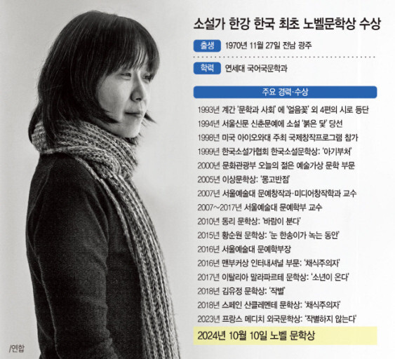 그러면서 한강 작가님은 채식주의자, 소년이 온다와 같은 작품을 통해, 우리 역사의 아픔과 인간의 깊은 내면을 시적이고 실험적으로 표현하며, 한국 문학의 위상을 세계에 알렸다고 강조했다.