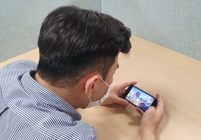 [사진설명] 한 직장인이 스마트폰을 들고 게임에 열중하고 있다