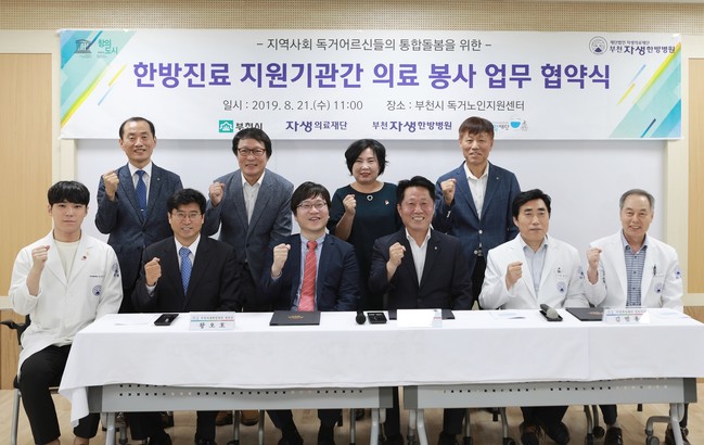 자생의료재단(이사장 박병모)은 지난 21일 부천자생한방병원(병원장 왕오호)이 부천시, 부천희망재단과 함께 부천지역 독거노인들의 건강관리를 위한 업무 협약(MOU)을 체결했다고 22일 밝혔다.