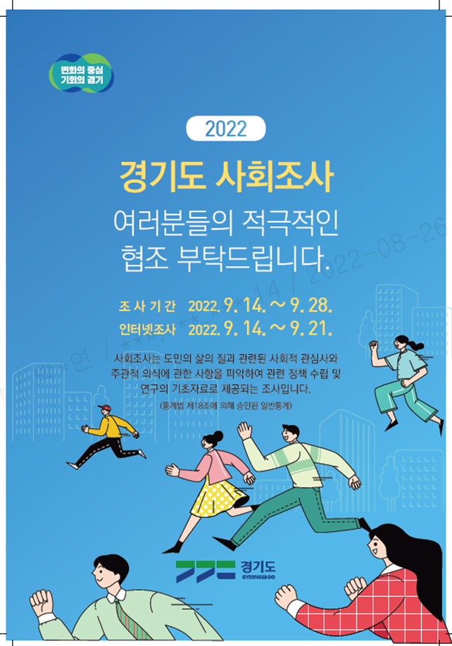 조사원이 표본으로 가구를 방문해 면접방식으로 조사하는 ‘가구방문조사’와 ‘인터넷조사(https://www.narastat.kr/gg2022_i)’를 병행한다. 인터넷 조사는 14일부터 21일까지 진행된다.