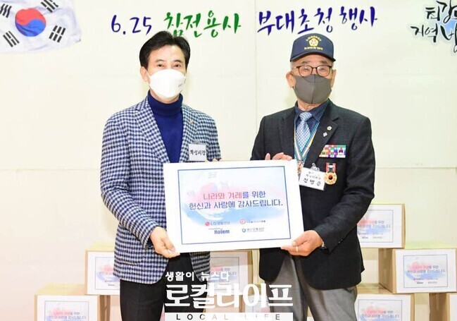 [화성=로컬라이프] 송준형 기자 = 서철모 화성시장이 51사단 작전지역인 경기도 11개 시에 거주하고 있는 6.25 참전용사들의 고귀한 희생과 헌신에 보답하기 위한 '사랑의 희망박스' 전달 행사에 참여했다.