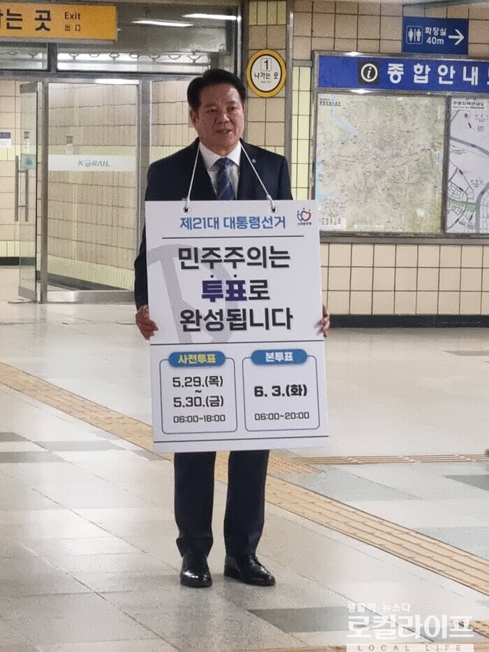 [안양=로컬라이프] 송준형 기자 = 최대호 안양시장이 제21대 대통령선거 사전투표 참여를 독려했다.