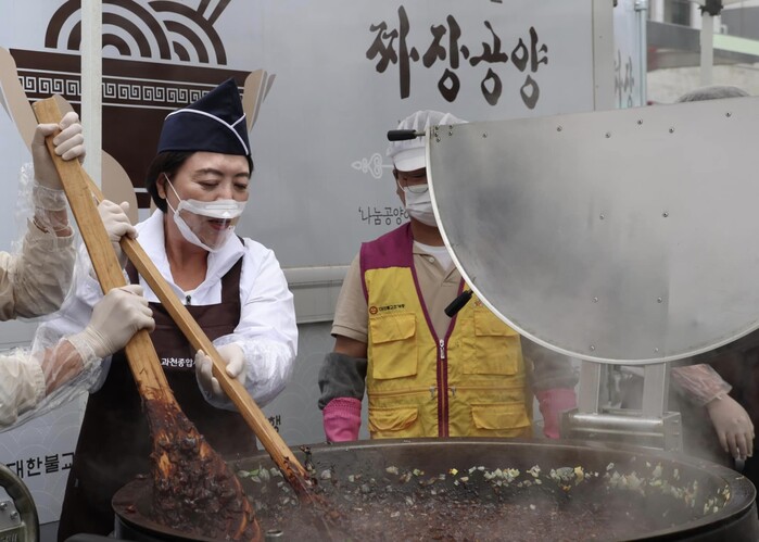[과천=로컬라이프] 송준형 기자 = 과천시 과천포레드림에서 입주민을 위한 짜장 나눔 행사가 열렸다.