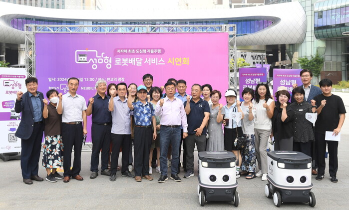 성남시는9일 오후1시 판교역 광장에서‘성남형 로봇배달 서비스’의 시작을 알리는 시연회를 개최했다.