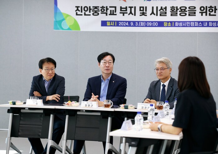 화성시(시장 정명근)가 3일 화성시민대학에서 경기도화성오산교육지원청(교육장 정광윤), 권칠승 국회의원실과 함께 ‘진안중학교 부지 및 시설 활용’을 위한 업무협약을 체결했다.