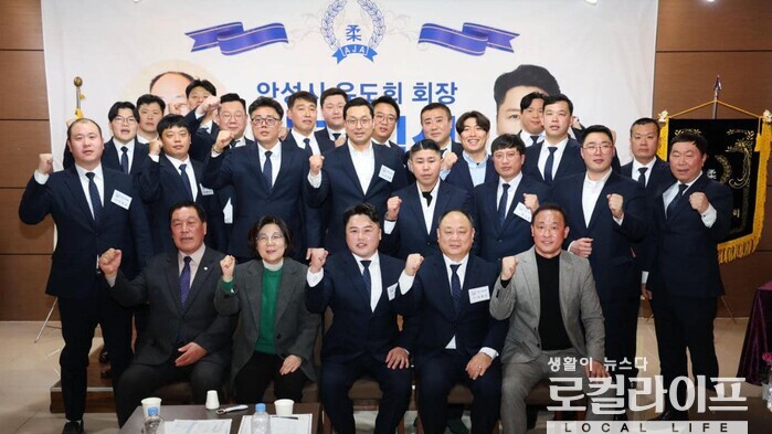 | ▲ 김보라 안성시장(맨 앞줄 왼쪽에서 두 번째)이 안성시 유도회장 이·취임식에 참석해 기념촬영을 하고 있다. (사진출처=김보라 페이스북) |