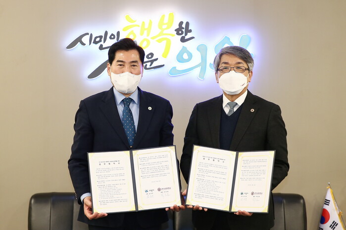 의왕시는 24일 시청 시민소통실에서 김상돈 의왕시장과 박준훈 한국교통대학교총장이 참석한 가운데 의왕시1인창조기업지원센터 운영을 위한 업무협약을 체결했다.