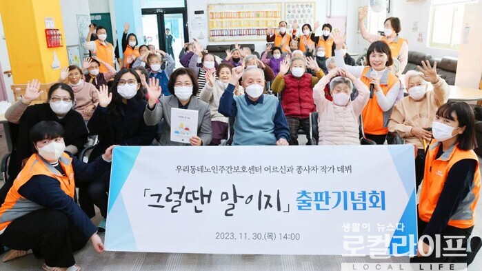 [안성=로컬라이프] 송준형 기자 = 안성시 ‘우리동네노인주간보호센터’ 노인들이 직접 쓴 글과 그림을 엮은 ‘그럴땐말이지’가 출간됐다.