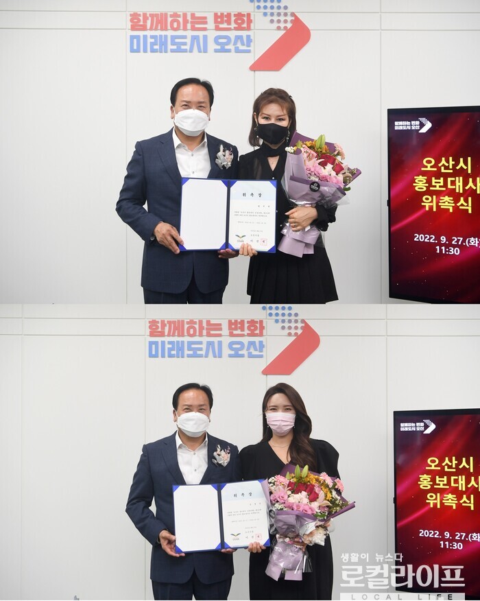 그러면서 “두 분 오산시 홍보대사 위촉을 다시 한번 축하드린다”며 “각자의 분야에서 활발한 활동을 기대하며 또한 적극적인 오산시 홍보활동으로 오산시를 널리 알릴 수 있도록 노력해주길 바라겠다. 고맙다”고 말했다.