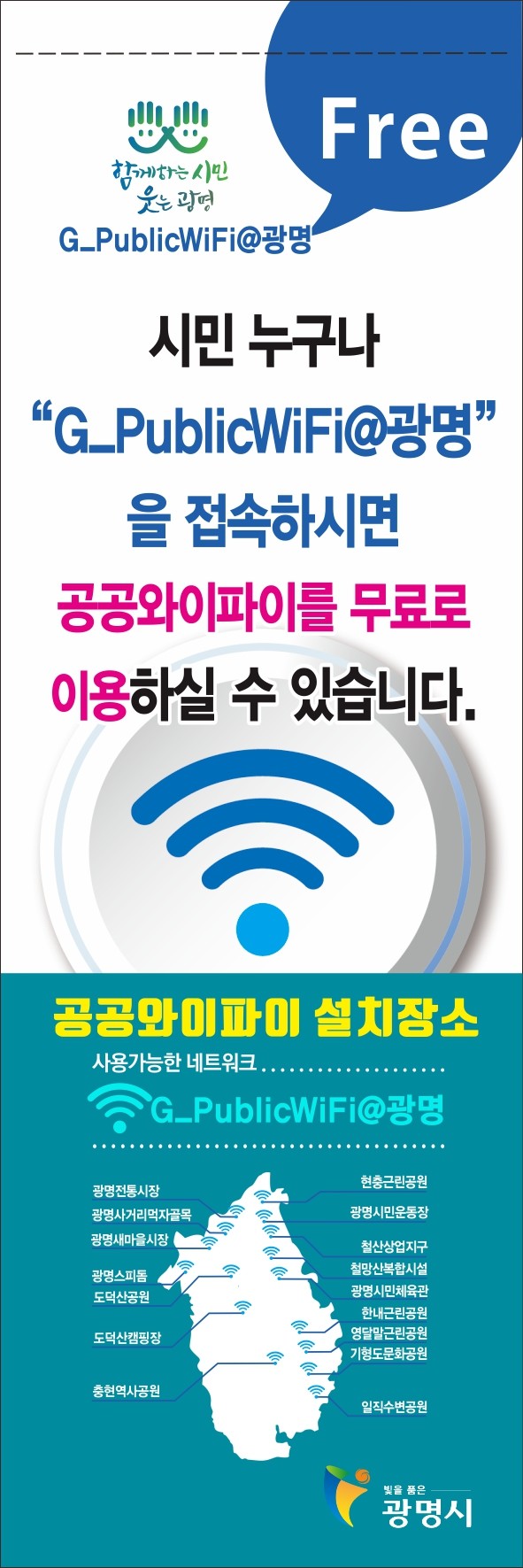 사진/ 광명시는 공공장소 5곳에 15대의 무선인터넷을 구축해 4월 27일부터 무료 서비스를 지원한다-와이파이(배너)