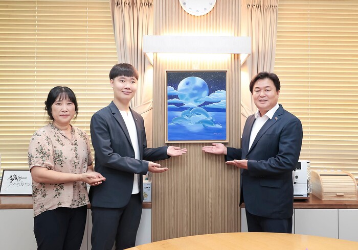 그러면서 오늘 김채성 작가님과 훌륭한 어머니, 그리고 김채성 작가님처럼 발달장애 예술가분들을 지원하는 '아트림' 김경희 대표님이 시흥시청을 찾아 주셨다고 전했다.