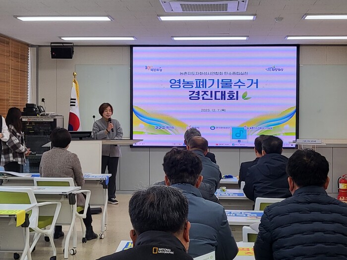 이날 경진대회는 각 읍면동 농촌지도자회가 각 마을과 농가에서 농업 자재인 폐비닐, 농약병, 농약포장재 등 영농폐기물을 수거해 농업기술센터 광장에 집하하면 한국환경공단이 폐기물 무게를 계측하고 위탁 처리하는 방식으로 진행됐다.