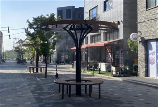 ‘쿨링포그’는 정수 처리된 수돗물을 특수 노즐을 사용해 빗방울의 약 1,000만분의 1크기의 인공 안개로 고압 분사하는 장치로, 공기 중에 분사된 물이 기화하면서 주위 온도를 3~5℃ 정도 낮추는 효과가 있다.