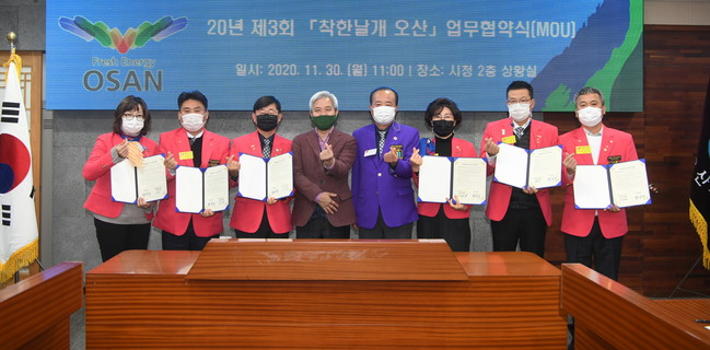 [로컬라이프] 오산시(시장 곽상욱)는 11월 30일 시청 상황실에서 관내 로타리클럽 6개소와 ‘2020년 제3회 착한날개 오산 업무 협약식’을 가졌다.