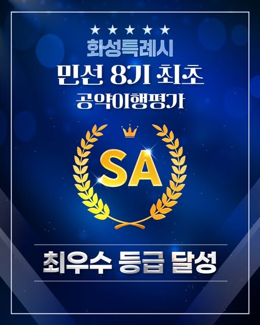 이와 관련해 정 시장은 이날 자신의 페이스북을 통해 우리 화성특례시가 민선 8기 최초로 한국매니페스토실천본부가 주관한 ‘2025 전국 기초단체장 공약 이행평가’에서 SA(최우수) 등급을 달성했다고 밝혔다.