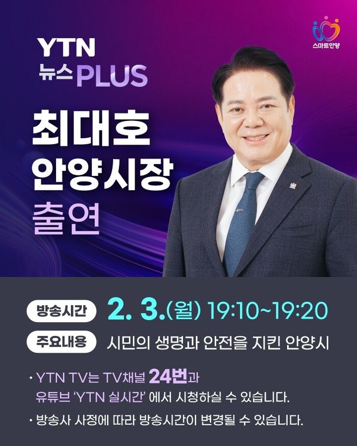 이와 관련해 최 시장은 2일, 자신의 페이스북을 통해 오는 3일, YTN 뉴스플러스에 출연해 안양시의 신속한 폭설 대응과 시민 안전을 지킨 비하인드 스토리를 전한다며 다음과 같이 일정을 밝혔다.