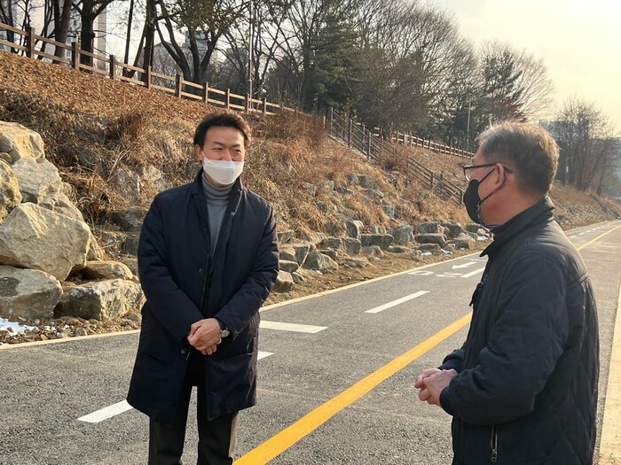 그러면서 자전거 도로에 중앙선이 생겨 질서 있는 자전거 운행이 가능해졌다, 별양교에서 양재천 산책로로 내려오는 길이 생겨서 편하다고 말씀하시는 분들이 계신다면서, 별양교 아래의 공간을 깨끗하게 단장했고, 산책로를 확장하여 자전거 운행 및 보행을 원활하게 했다고 강조했다.
