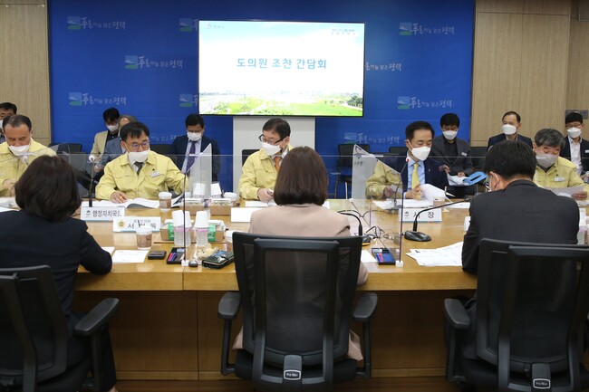 정 시장은 “각종 지역현안 해결을 위해 노력하시는 도의원님들께 감사드린다”며 “앞으로도 코로나19로 침체된 지역경제 활성화 및 현안사업의 정상 추진을 위해 도비확보와 지원을 요청드린다”고 말했다.