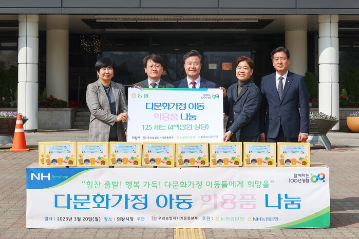 의왕시는 3월 20일 NH농협은행 IT사랑봉사단에서 다문화 가정 지원을 위한 학용품 125세트(400만원 상당)를 기탁했다고 밝혔다.