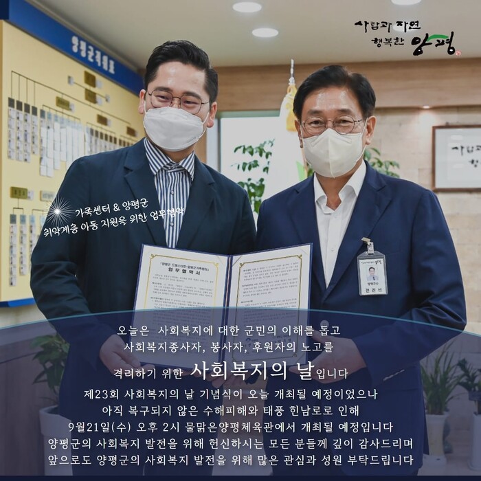 이어 양평군의 사회복지 발전을 위해 헌신하는 모든 분들께 감사드린다고 말했다.