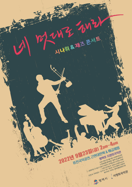 평택시(시장 정장선)가 코로나19 팬데믹으로 얼어 있던 문화예술을 깨워 선도하겠다는 포부로 야심찬 관광콘텐츠를 개발했다. 100년 전 근대기의 우리음악과 우리의상을 입고 지금의 아름다운 호수를 즐길 수 있는 특별기획 「네 멋대로 해라, 시나위」가 오는 23일과 24일 이틀간 평택호 내 지영희국악관에서 열린다.