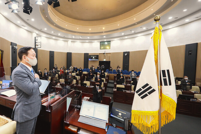 원유민 의장은 개회사에서“위드 코로나 사회는 아직 아무도 정의할 수 없는 새로운 시대이다. 우리의 한 걸음, 한 걸음이 좌표가 되고 새로운 길이 될 것이다. 그 누구의 희생과 상처 없이 일상 회복을 이끌어 낼 수 있는 위드 코로나 사회로의 전환을 위해, 화성시가 선도적으로 걸어갈 수 있기를 바란다” 며“아울러 집행부에서는 시민의 대의기관인 시의회에 시정을 상세하게 설명하고 이해를 구하는 진지한 태도로 임해 주시고, 의원님들이 지적한 사항이나 제시된 대안에 대해서는 적절한 조치를 신속하게 마련하여 이번 임시회가 시정발전을 위한 뜻깊은 회기가 될 수 있도록 성실히 임해 주시길 당부 드린다” 고말했다.