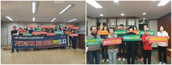 이날 광명3동 지역사회보장협의체와 철산4동 바르게살기위원회 위원 30여 명은 “광명시민의 의견을 무시하고 진행되는 구로차량기지 광명 이전을 결사 반대한다” 등 구호를 외치며 결의를 다졌다.
