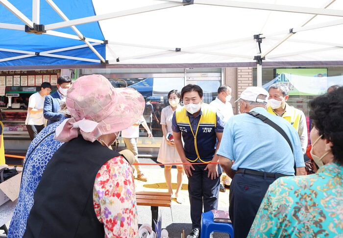 아울러 임 시장은 상인분들과 시민분들께 인사드렸다면서, 모두가 행복한 추석되시길 소망한다고 말했다.