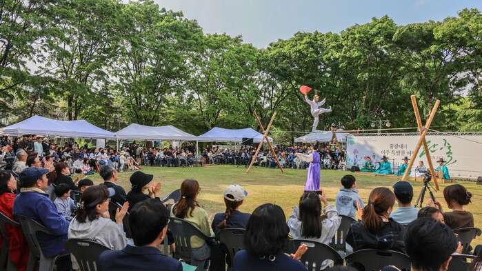 [과천=로컬라이프] 송준형 기자 = 지난 11일 과천 중앙공원에서 국가무형유산 줄타기 공개행사가 성황리에 열렸다.
