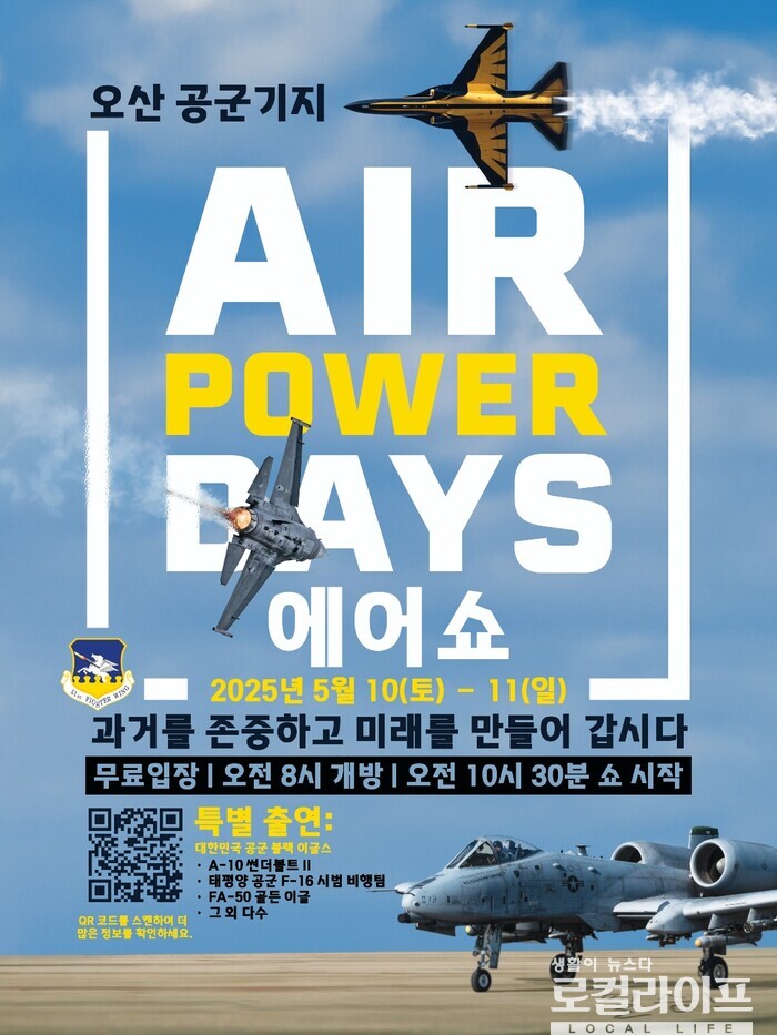 [평택=로컬라이프] 송준형 기자 = '오산 공군기지 AIR POWER DAYS 에어쇼'가 5월 10일과 11일 양일 간 오산 공군기지에서 개최된다.