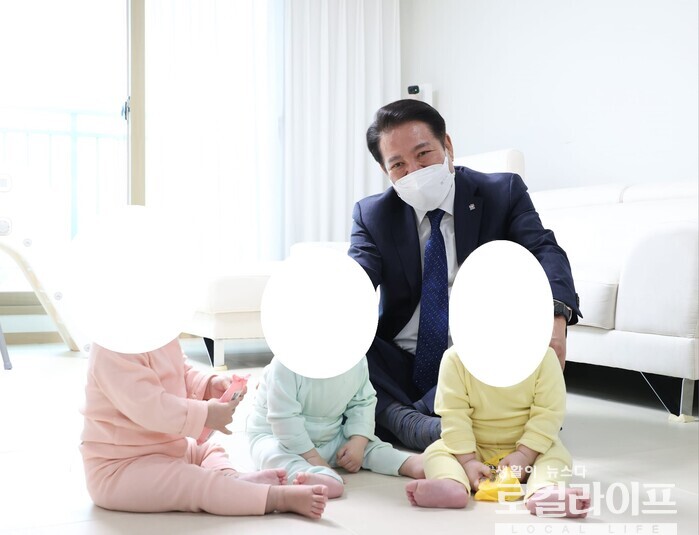 [안양=로컬라이프] 송준형 기자 = 최대호 안양시장은 5일, 세쌍둥이 가정을 방문해 축하를 전했다.