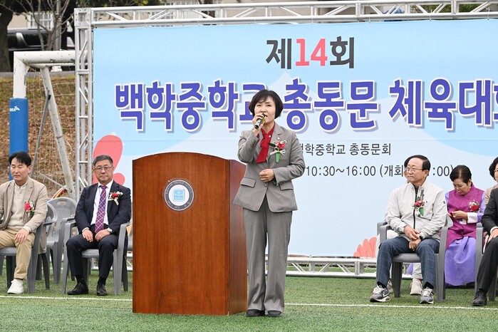 아울러 오늘 체육대회를 통해 안부를 묻고 격려하며 비록 몸은 떨어져 있어도 서로의 건승을 빌어 주는 자리가 되길 바란다며, 백학중 동문회 발전을 응원한다고 말했다.