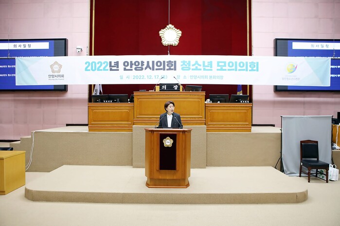 이어 청소년의회는 작년에 제정된 안양시의회_청소년의회_운영에_관한_조례에 따라, 관내 학교에 재학 중인 9세 이상 19세 이하의 청소년들이 민주적 의사절차, 지방의회의 기능과 역할 등을 체험하게 되는 프로그램이라고 전했다.