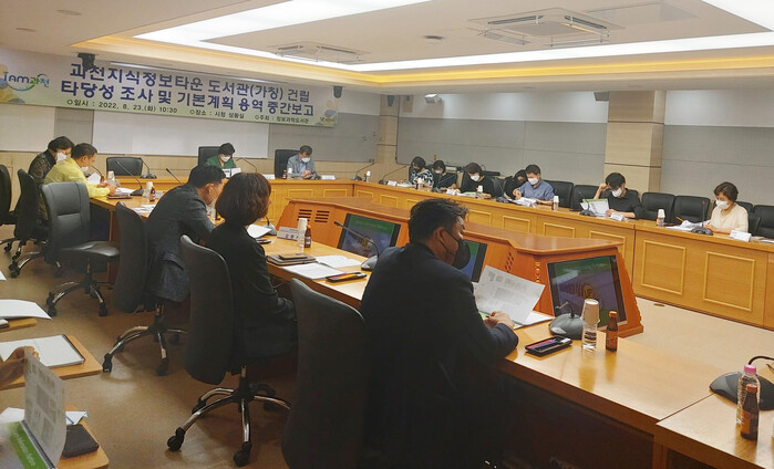 과천시가 과천지식정보타운 내 공공도서관 건립을 추진하는 가운데, 건립 타당성 및 기본계획 수립을 위한 용역의 중간보고회를 23일 시청 상황실에서 개최했다.