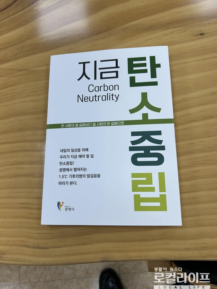 [광명=로컬라이프] 송준형 기자 = 광명시 탄소중립과에서 발간한 <지금은 탄소중립>이라는 책과 관련해 박승원 광명시장은 20일, 자신의 페이스북을 통해 “지금 탄소중립. 기후의병 탄소저금통. 대선 전에 지금 탄소중립이란 책을 광명시 탄소중립과에서 펴냈다”며 “2018년부터 추진한 광명시의 깨알 같은 탄소중립 정책을 시민들이 읽기 편하도록 단행본으로 만들었다. 읽어보신 분들이 쉽게 쓰여져서 좋다고 한다. 일찍 홍보하지 못한 것은 괜한 오해를 받을까봐 이제사 홍보해 보려 한다”고 밝혔다.
