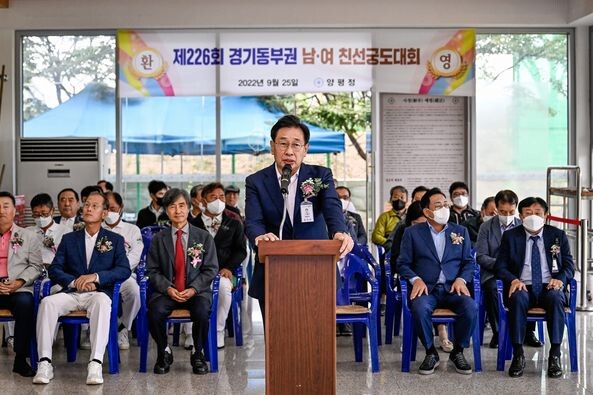 전진선 군수는 이날 2022년 경기동부 12개정 친선 남녀 궁도대회 개회식에도 참석했다며, 경기도 동부권 궁도인 여러분들의 양평방문을 진심으로 환영한다고 말했다.